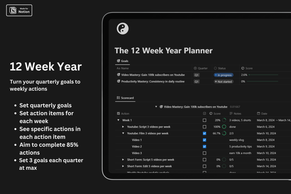 - Simplify goal-setting: Break down big goals into 12-week plans.