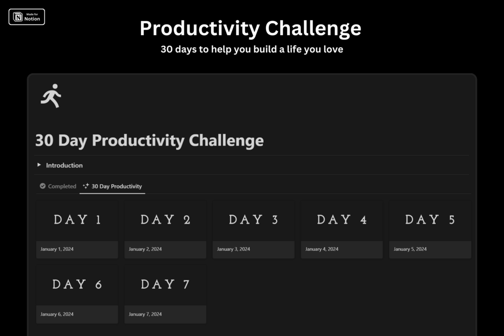 Make 2024 your most productive year by setting goals, reflecting on them, and working towards success. This template includes a 30-day productivity challenge based on Ali Abdaal's newsletter 30-Day Productivity.