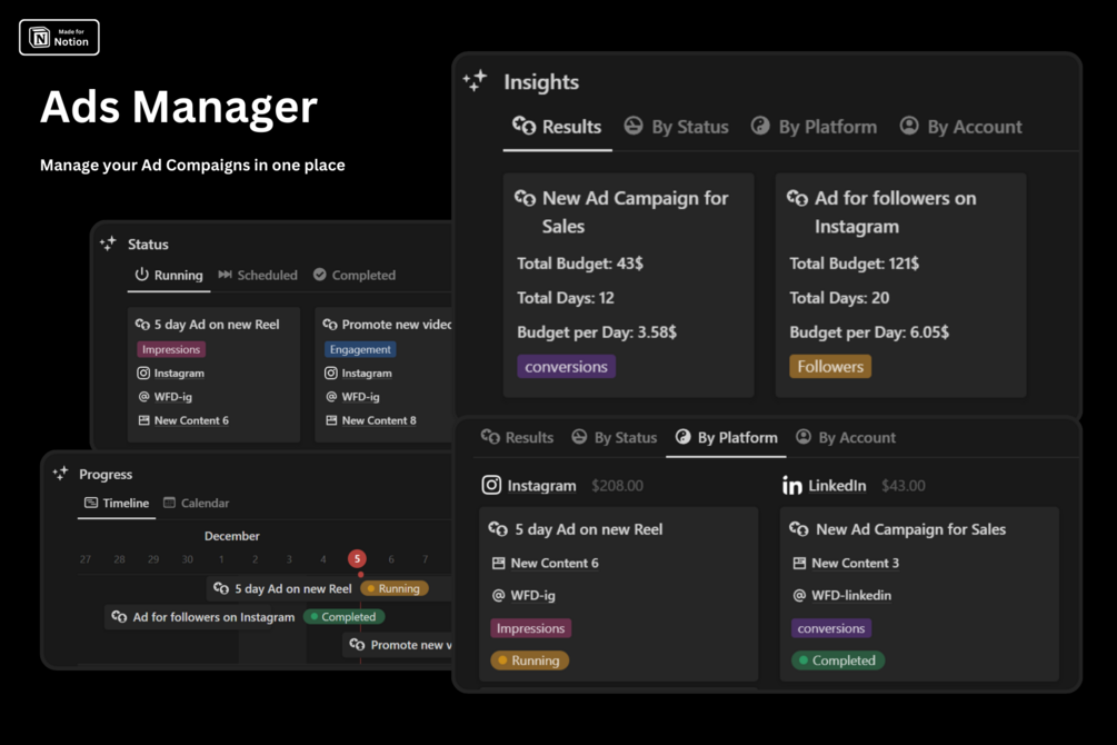 - Ads Manager: Efficiently oversee and optimize your ad campaigns across various platforms, ensuring maximum reach and impact.