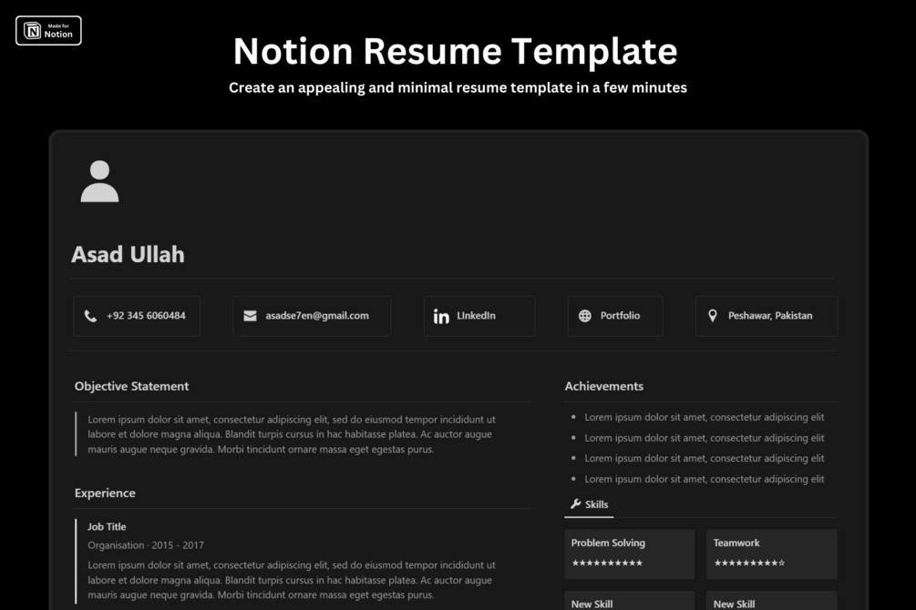 Elevate your resume game with our Notion template – a hassle-free, modern, and effective tool for presenting your professional story. Download now and make a lasting impression!